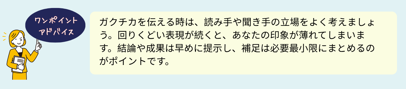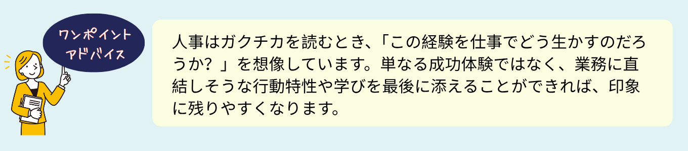 企業が知りたいのは、その結果に至るまでの行動や工夫です。成果を述べた後に、そのなかで発見した課題を伝え、「なぜ」「どのように」を必ず説明し、あなたが取り組んだ姿勢が採用担当者にも伝わるよう意識しましょう。