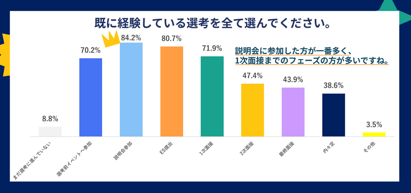 選考に関するお声もたくさん届いているので、今回は『27卒の皆さんの就活状況』をデータでご紹介します。