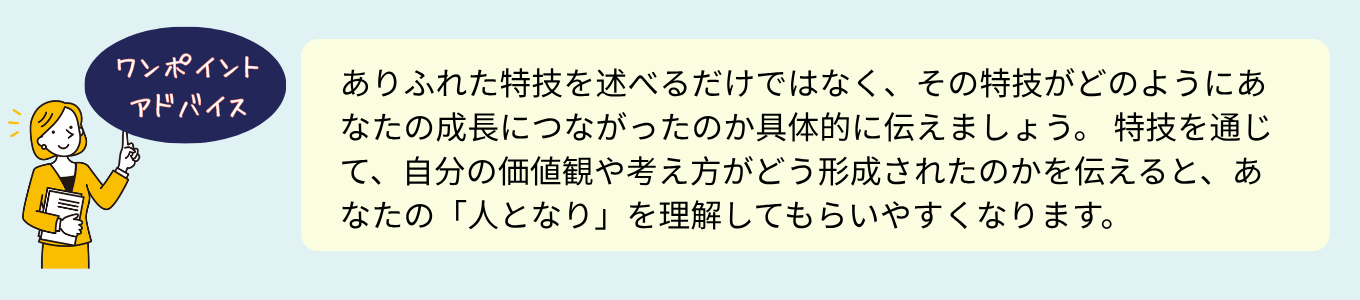 特技をアピールする際に重要なのは、その経験をどのように職場で生かすのかを具体的に示すことです。