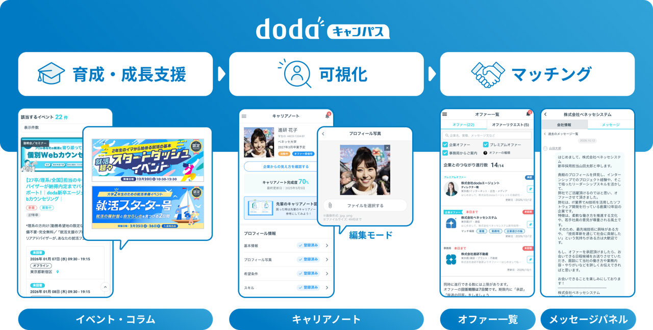 dodaキャンパスは、学生の育成・可視化・マッチングを支援することで、