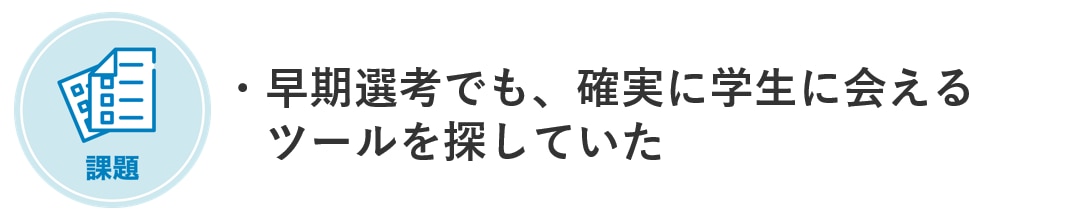溝口様:結論からいうと、「限られたリソースで、会いたい学生さんに確実に会う」ためです。
