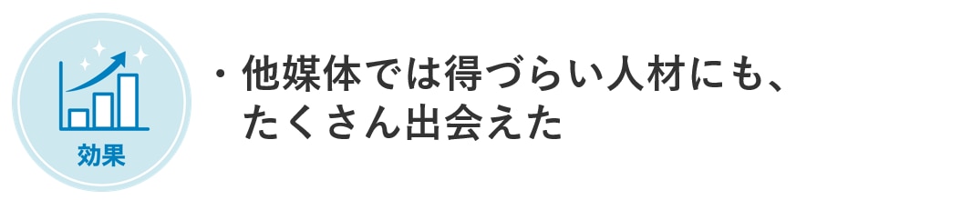 溝口様:営業担当の方とお話した際、最新の新卒採用市場の動向を伺ったのですが、想定していた以上の情報量をいただいて驚いたのを覚えています。これまで活動をしたことのない時期に動き出す予定だったので、未知の舵を取るうえで頼りになるだろうと感じました。
